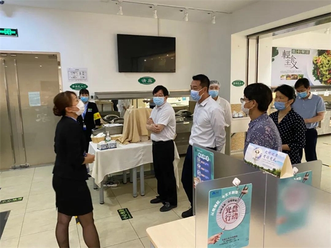 图为公司直属纪委深入聚缘公司,现场监督检查员工食堂防疫措施落实情况