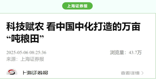未来,中国中化将以粮食主产区为重点,加快打造以高标准农田为基础,以集成技术为核心,以专业化服务为支撑的现代农业发展体系。推动亩产提升、农户增收,为推动中国农业高质量发展,提供更多实践样本。