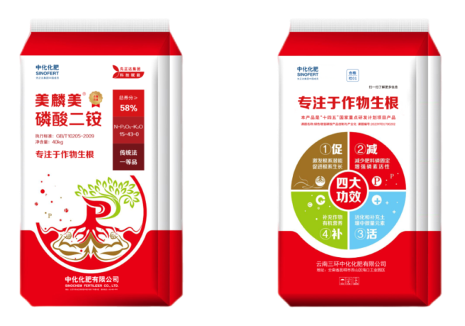 美麟美®是中化化肥研发的增效磷肥产品,于2018年正式上市。磷是我国战略性矿产资源,稀缺而不可再生,且磷在作物营养三大元素(氮、磷、钾)中吸收利用率最低,当季平均吸收利用率仅有15-20%。中化化肥凭借科技硬实力和行业深厚积累,适时向市场推出美麟美®增效麟肥,品牌形象直观,品牌寓意喜庆,产品效果好,迅速在农民用户中打开市场。近年来,在中化化肥“生物+”战略引领下,“美麟美®”品牌持续迭代,现旗下产品已升级至第三代,有效提升磷肥吸收利用率达30%以上。