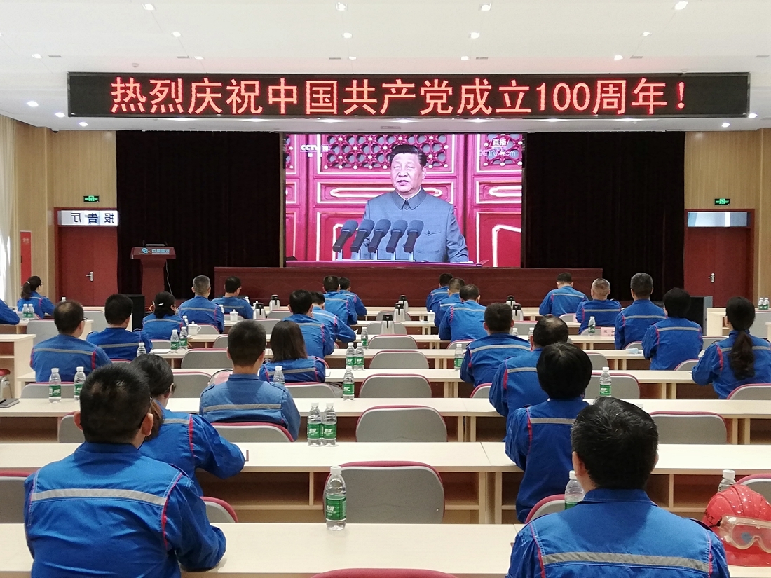 沈化集团员工观看庆祝中国共产党成立100周年大会实况
