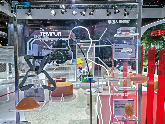 埃肯有机硅在本次进博展台上展出的应用于工业软体的机器人、术前仿真模型、心脏模型等生命健康领域的3D打印产品,是吸引观众驻足的一大亮点。