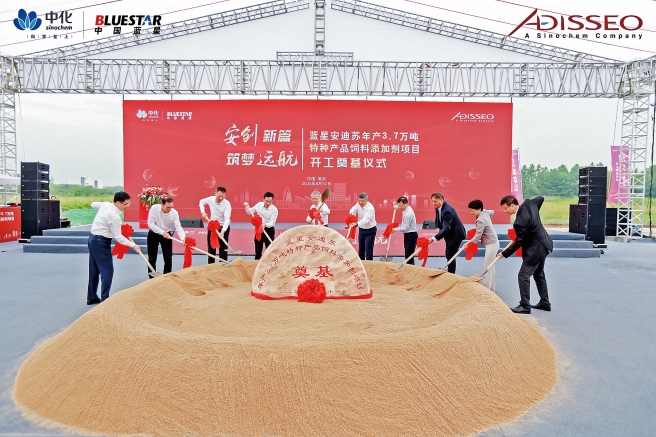 8月31日,蓝星安迪苏3.7万吨/年特种产品饲料添加剂项目(以下简称FOSIC项目)开工奠基仪式在位于南京溧水区的南京国家农业高新技术产业示范区举行。中国中化副总经理、党组成员阳世昊,南京市委副书记、南京国家农高区党工委(筹)书记沈文祖等出席仪式并致辞。
