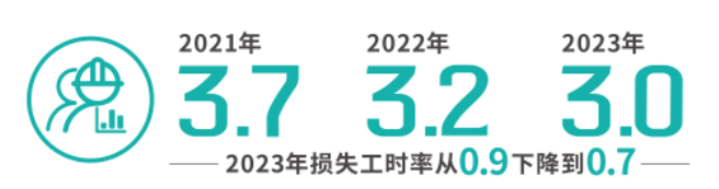 安全生产:安全生产是蓝星埃肯的重中之重。据统计,蓝星埃肯20万工时总可记录的工伤率(TRIR)连续三年下降: