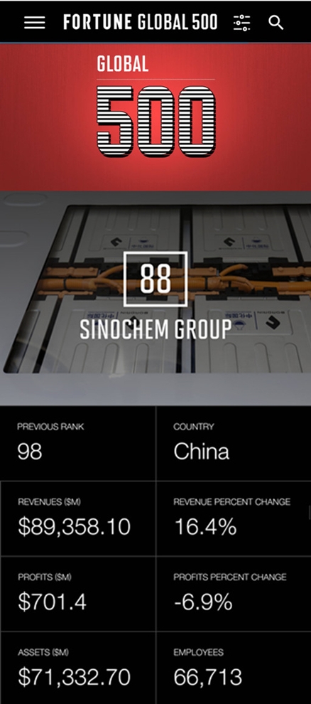 7月22日,《财富》杂志发布2019年“世界500强”榜单,中化集团以893.58亿美元的营业收入位列第88位,名次较上年提升10位,是历年来的最高名次。作为我国最早入围该榜单的企业之一,中化集团已29次入围世界500强榜。