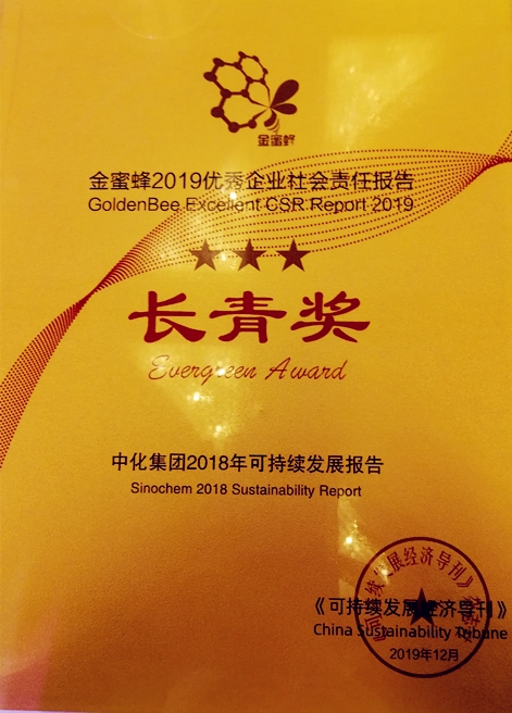 “长青三星奖”旨在表彰连续六年获得“金蜜蜂优秀企业社会责任报告”奖的企业,今年是中化集团第七次获得金蜜蜂奖。