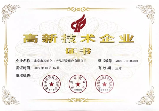 近日,石油销售公司下属北京市石油化工产品开发供应有限公司(简称北石化)通过“国家高新技术企业”认证,成为北京地区首家获此认证的油品销售企业。