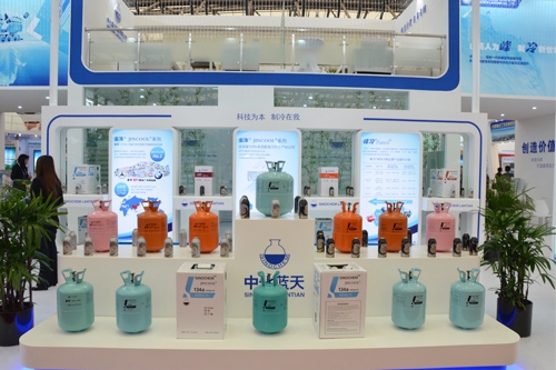 中化蓝天展台主要展出了公司自主开发的 “金冷”、“峰冷”等品牌的新型制冷剂产品,吸引了客户与同行的高度关注。其中,“峰冷”系列的HFC-161产品成为此次制冷展一大亮点,臭氧破坏潜能值(ODP)为0,温室效应潜能值(GWP)为12,环保性能突出,应用领域广泛,大部分产品可灌注替代现行的制冷剂直接使用。