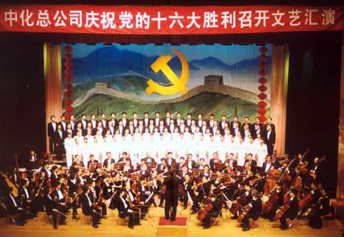 12月11日下午,中化公司在广播剧场举行文艺汇演,庆祝党的十六大胜利召开。演出会上,来自京内外1300多名中化系统的员工表演了自己精心排练的歌曲、小品、合唱等丰富多彩的文艺节目。