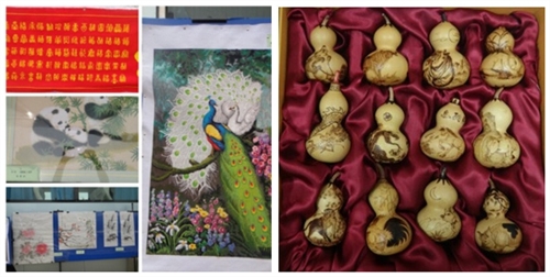 活动得到广大员工积极响应,纷纷拿出自己的得意之作。活动共收集艺术作品42个,十字绣作品中有栩栩如生的孔雀、迎春开的红梅、寓意吉祥的福字图、憨态可掬的熊猫吃竹子,水墨画“富贵平安”,还有雕刻作品十二生肖,怡生园美丽春景的摄影作品……每一件艺术品都凝结着作者的创造力和想象力,让参观者无不为身边同事的才华智慧所折服。