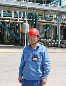 说起苏兴虎,人如其名,他可是中化近代环保化工(西安)有限公司(以下简称“西安环保化工”)的一员“虎将”,按照西安环保化工总工程师王军的说法,苏兴虎“作风硬朗、敢打硬仗”,有他在生产线上让人放心。 “猛虎”出山 苏兴虎的老家在陕西商州,地处秦岭腹地,1988年他到商州化工厂学徒,而商州化工厂是当时西北几省唯一一家做制冷剂的企业,他也就成为整个西北地区最早一批接触氟化工生产的工人之一。凭着一股肯吃苦的干劲,苏兴虎渐渐熟悉了与氟化氢打交道的各个环节,掌握了过硬的技术,多次被工厂评为先进工作者、厂级劳模,自己也当上了商州化工厂的车间主任。 1997年,西安环保化工成立,准备生产替代氟利昂的新型环保制冷剂HFC-134a,当时,在西安接触过氟化工生产的工人少之又少,苏兴虎和其他几个商州化工厂的工友便被西安环保化工借调了过来,参加200吨/年HFC-134a生产装置的设备安装,担任生产部B班班组长。 B班负责设备管道的吹扫及试压试漏工作,由于班组新工较多,又没有氟化工操作经验,在生产过程中,苏兴虎不厌其烦地给大家讲解、示范,一遍不行就再来一遍。进罐作业的时候,虽然工作环境艰苦、危险,但苏兴虎总是身先士卒,给班组的青工做出表率。1998年,B班被评为西安环保化工先进班组,苏兴虎也因成绩突出于2000年1月份被提升为生产部副经理。 由于家在外地,苏兴虎平时就住在厂区的宿舍里。因为生产一线上就属他技术最过硬,别人当班是8个小时,他成了24小时当班,日常生产、设备检修、事故处理,有什么解决不了的事情大家都去找他。生产线上有他在让人放心,可家里的事情根本就指望不上他。前几年,HFC-134a的产量少,工作还没有那么忙,苏兴虎抽空还能回商州老家看看。随着西安环保化工二期5000吨/年装置和三期5000吨/年装置的安装投产,生产部的工作越来越多,一线也离不开苏兴虎这个挑大梁的人,现在他一个月也不一定回得了一趟家。 2003年二期装置试车时正值严冬,作为HFC-134a生产装置的负责人,苏兴虎连续三个月没回过家。父亲住院了,他托弟弟帮忙照料;春节来临,家人盼着他能回去过个团圆年,领导也让他回去照料一下生病的父亲,但是由于正值试生产阶段,他仍坚持在生产一线,直到试车成功。三期试生产阶段,由于系统运行不稳定,他曾经连续跟了九个班,解决现场出现的问题。领导让他休息,他说:“现在试车是非常时期,请给我机会做一回‘非常’之人吧!”在他的带动和大家的辛勤努力下,一组组数据出来了,合理的操作工艺制定出来了,三期试车也获得圆满成功。 抢险英雄 HFC-134a是一种新型环保制冷剂,原料之一的氟化氢却极其危险,每立方空气的安全含量不应超过1毫克。由于氟化氢的沸点只有19. 西安环保化工的200吨/年中试装置和二期5000吨/年装置都是国内首套HFC-134a工业装置,具有高压、高温、强腐蚀性特点,没有成熟的生产经验可以借鉴,运行过程由于设备的问题难免会出现一些故障或意外,这就给工作人员提出了很高的要求。每次出现险情,苏兴虎总是以最快的速度冲到现场。在他担任生产部副经理以来,先后排除险情数次,其中令大家印象最深的是三期装置回流罐泄漏事故。 2006年7月23日22时5分,随着生产现场发出的一声气流声,整个三期装置四楼处于一片白雾之中,物料借风力会随时对现场操作人员带来伤害,处理稍有不慎,也会对控制室操作人员造成伤害。当时在宿舍休息的苏兴虎听到气流声立刻跑了出来,当班班长报告情况的电话铃声响起时他已到达装置控制室。他随即指挥二期、三期装置紧急停车,并将泄漏的初步情况向公司总值班经理报告。在确认系统泄漏得到有效控制后,他带领人员穿戴好安全防护用具实施抢险。 凭着对三期装置各项设备和整个生产环节了然于胸的熟悉程度,苏兴虎克服风向不定、物料四处喷溅、现场充满强烈刺激性气体等困难,仅用十几分钟时间就彻底切断了泄漏点,最终使泄漏事故在最短时间内得到了正确而有效的控制,防止了泄漏事故的继续蔓延。 提起去年的这次事故处理,大家无不被苏兴虎身先士卒的表现所折服,更对他的处理方案感到钦佩。正是因为他的沉着与果断才将此次事故损失降到了最低点。但苏兴虎平静地说,“出了事总要有人顶上去,我熟悉情况,我不上去别人怎么办。” 平安是福 因为检测设备灵敏度的原因,虽然西安环保化工的HFC-134a实现了自动化生产和计算机监控,但要及时发现事故隐患,还是要依靠人工巡检。每天,苏兴虎都要在二期装置和三期装置现场转上两趟,用眼睛去看,用鼻子去闻。今年6月份,他和生产部的王锋经理又想出一个好主意,鼓励生产一线查缺堵漏,谁发现一处漏点就给予一定物质奖励,一个月下来,生产部巡检了1487处生产节点,查处了80多个安全隐患。 为了保证生产装置安全运转,也为了保证一线人员的人身安全,苏兴虎对于现场作业管理极为严格,许多青工都挨过他的批评,他“脾气大”的名声也就不胫而走。不过,挨过批评后,青工们对于这位学历不高但经验丰富的“老大哥”更加佩服,多少次都是因为他的现场管理避免了安全事故的发生。苏兴虎的管理“严”出了效果,他带过的青工如今有的已经成长为新任班组长,有的已经成为工艺工程师。这几年西安环保化工生产部对外输送出很多业务骨干,对太仓环保化工HFC-134a项目的顺