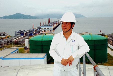 2010年二期项目建设紧张期,牟向峰冒着40度高温进入储罐,拿着手电筒,仔细检查质量与安全情况。2006—2010年,每年的元旦、春节,牟向峰均坚守在项目工地,与参建单位一起,为项目的早日建成而辛勤努力。