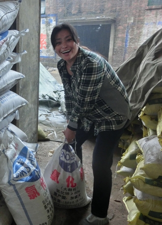 从自己的家走到办公室只需要十分钟的时间,但徐登兰经常会走几十分钟甚至一个小时。这是因为每天上班经过仓库,从仓库北门进,南门出,徐登兰要熟悉公司每种产品的库存情况,查看每袋化肥的状况,看见破袋及时做补救处理,破损厉害的及时做换包处理,她总是这样的一丝不苟,对待公司的货物,就像对待自家的物品一样认真,即便是没有货物出入库,她也要去仓库巡查一番,特别是刮风下雨的时候,她总是担心风会不会把剁刮开,仓库会不会漏雨等等。