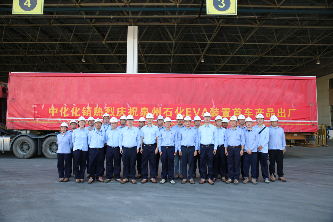 7月14日8点58分,中国中化泉州石化二期项目EVA(乙烯-醋酸乙烯共聚物)装置开车成功,产品合格。截至7月20日,EVA装置已生产两个牌号的EVA产品,装置设备均已达到稳定运行条件,标志着中化泉州石化100万吨/年乙烯及炼油改扩建项目17套装置均已投产运行,化工生产线全面打通,中国中化炼化一体化生产再上新台阶。 7月20日下午,首车EVA树脂产品(UL00218)在泉州石化立体仓库正式装车出厂。中化泉州石化与中化化销举行EVA装置首车产品出厂仪式,大家表示,将密切协同,稳步推进新产品、尤其是高端聚烯烃产品的研发与生产,为将中国中化建设成为世界一流的综合性化工企业而努力。