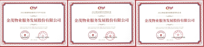 7月29日,中国物业服务力百强峰会启幕。会上,金茂服务荣获2022高端物业服务力TOP1、2022物业服务力百强企业、2022物业服务满意度领先等三项荣誉。