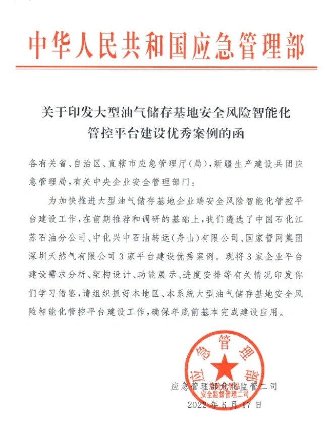 日前,中化兴中“基于标准化管理的安全风险智能管控平台”项目入选应急管理部大型油气储存基地安全风险智能化管控平台建设优秀案例,并在全国范围内推广学习。 中化兴中拥有297万立方米储罐罐容,建有6座3000至30万吨级输油码头,可同时靠泊两个VLCC(超大型油轮),接卸和装运500至37.5万吨油轮,是国内最大的国际商用石油储运企业之一,同时也是上海期货交易所在华东地区的燃料油交割油库之一。 去年5月,中化兴中获评应急管理部首批“工业互联网+危化安全生产”示范建设单位。一年多来,中化兴中立足建设“中化物流港”,以“工业互联网+危化安全生产”新型基础设施为中心,构建危化安全生产数据支撑平台。在舟山市应急管理局的协同推动下,中化兴中安全风险智能化平台目前已推广应用到舟山8家行业单位,受到一致好评。 未来,中化兴中将继续推进“智能工厂+智慧HSE”建设,持续提升智慧化HSE管理水平,助力区域油气全产业链建设。