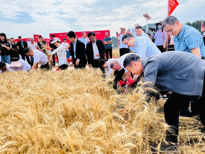 日前,MAP粮作四川举办“丰吹麦浪”酿酒专用小麦观摩会暨五粮液MAP专用粮基地测产会,并举行开镰仪式。
