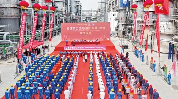 4月2日,鲁西集团举行30万吨/年己内酰胺·尼龙6项目中交仪式,标志着项目由建设阶段转入试生产准备阶段。该项目是鲁西集团借助中国中化研发平台和产业链优势、深耕化工新材料领域的重要成果,是山东省重点项目,也是鲁西集团单项投资最大的项目,包括环己酮、己内酰胺、尼龙6生产装置及配套辅助设施。