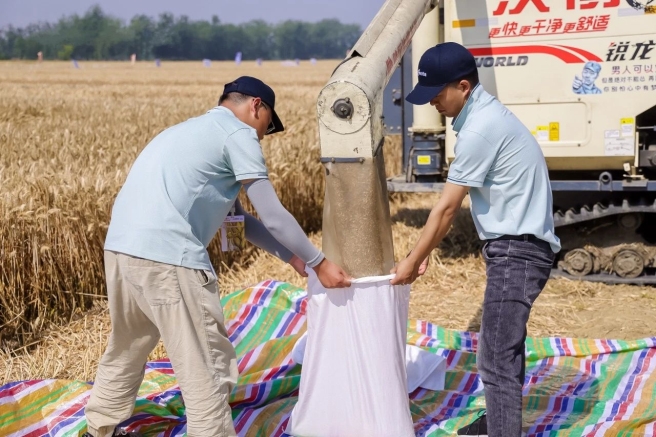 农户贾喜春是麦甜®的尝试者和受益者。“我种了300亩小麦,第一次使用麦甜®,麦子落黄的效果很突出,穗大饱满还抗倒伏。与往年比,麦穗颜色差异非常明显,小麦品质明显更好,每亩地预计增产150斤!”