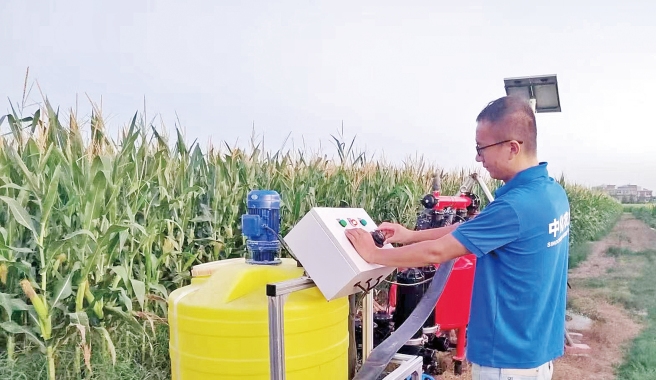 近日,在安徽省阜南县,玉米大豆进入田管关键期。中化农业MAP阜南技术服务中心抢抓农时,积极为服务农户提供种植技术指导,保障秋粮丰收。农艺师采用变量施肥、精准滴灌的作业方式,将水和肥精准送达农作物根部,保证玉米后期生长的营养供应,促进玉米齐穗增产。