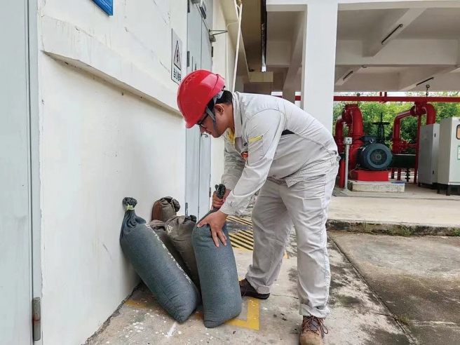 氯碱事业部 为有效应对极端天气,广西大华定期组织员工开展防汛演练,以提高应急处理能力,并储备充足防汛物资,确保应急使用。 在台风“摩羯”登陆前夕,广西大华提前制定防汛应急预案,落实好防汛各项责任。厂区不仅加强汛期隐患排查和日常巡检,还对易积水区域进行实时监控。