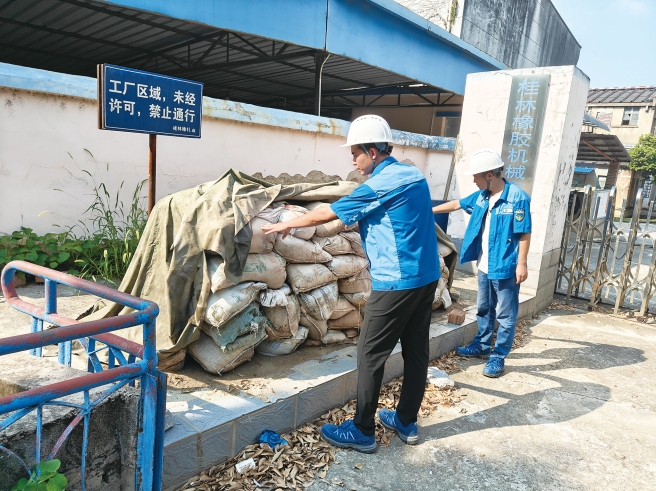 装备公司 中化橡机桂林基地根据台风情况随时调整应急准备状态,并做好日常防险准备工作,备足防洪沙袋、防水挡板、抽水泵等应急物资储备,排除周边山石险情,确保排水系统畅通无阻,降低山体滑坡和内涝风险。