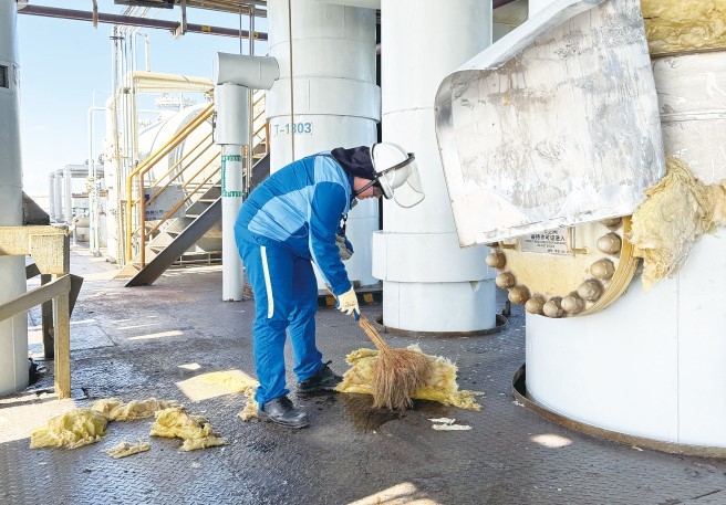 昊华公司 9月5日,曙光院迅速启动台风防范工作,组织开展防大风、防暴雨隐患排查,通过疏通公司范围内排洪沟、加固防洪护坡、配齐应急物资、加固或拆除易被风吹动的搭建物等措施,有效强化应对台风能力,避免遭受损失。 “贝碧嘉”台风来袭前,中化蓝天太仓基地各车间组织开展专项防台风排查,清理固定装置上的物资、设施等,加派岗位人手,提高应急能力。台风过后,太仓基地各车间立即组织对生产现场进行隐患排查,做好清理恢复,对发现的安全隐患进行妥善处理,全力以赴确保各生产装置安全平稳运行。