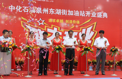 9月9日,我司下属中化(福建)石油销售有限公司(以下简称中化福建公司)泉州东湖街加油站开业。集团公司副总裁、泉州石化总经理杜国盛,福建省经贸委副主任吴秉成和泉州市副市长许昆贞共同为泉州东湖街加油站开业剪彩。