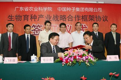 9月16日,我司下属中国种子集团有限公司与广东省农业科学院举行了战略合作框架协议签订仪式,集团公司总裁助理张伟与广东省农业科学院党委书记、院长蒋宗勇代表双方在协议上签字。此次战略合作旨在促进生物育种科技创新和成果转化,提高我国种业产业国际市场竞争力,从而保障农产品有效供给与国家粮食安全。