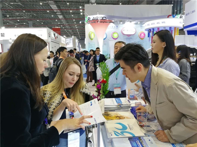 中化展区主要展示了塑料粒子原料、汽车料成品材料等实物,以及“壹化网”B2B电商平台。展会期间,中化工作人员与客户就产品价格、服务内容、原材料新技术及应用等话题进行了深入交流,共发放宣传3000余份,吸引20多个国家和地区的参观客户共8000多人次,深度洽谈客户逾百组。