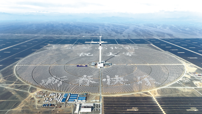 在新疆吐鲁番的“光热+光伏”一体化项目现场,蓝星北化机团队通过线下模拟,精准控制逐日镜单片反射角度,拼出“蓝星北化机祝大家新春快乐”的温馨贺词,向蓬勃发展的中国新能源事业和全国人民致以最诚挚的祝福。