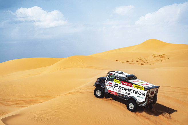 1月17日,第47届达喀尔拉力赛在阿拉伯沙漠圆满落幕。在该场赛事中,Prometeon助力捷克车手小马丁·马西克在卡车组比赛中夺冠,彰显出Prometeon在轮胎领域的卓越实力。 本届达喀尔拉力赛赛程为业内最严苛的赛程之一,全长7700公里,计时路段达5100公里,包含一个序幕赛段、12个赛段、一个48小时特别计时赛段以及无技术支援的马拉松赛段。Prometeon专为极端条件设计的S02拉力赛轮胎,在沙地与岩石路况表现优异,助力选手及其团队在12个赛段中获得10胜,最终以领先第二名2小时21分钟的绝对优势夺冠。