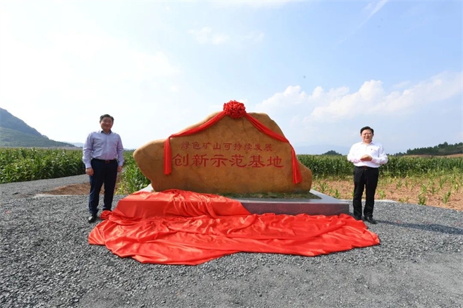 随后,宁高宁、刘志仁一行前往塘头坳,共同为绿色矿山可持续发展创新示范基地揭牌。塘头坳是矿山采矿剥离配套的排土场,原来这里高高低低,杂草重生。郴州基地边堆存、边治理,创新性地将排土场建设与耕地再造结合起来,引入中化农业现代种植技术,并在当地政府的支持指导下,打造出一个“绿色矿山可持续发展创新示范基地”。