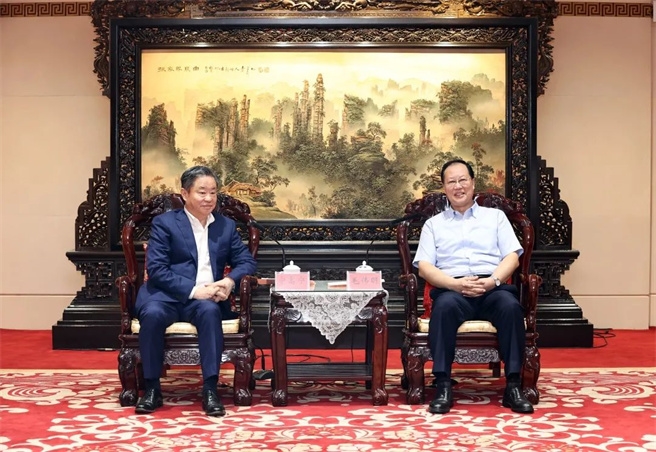 为深入学习贯彻习近平总书记考察湖南重要讲话精神,进一步深化央地合作,推动高质量发展,9月29-30日,中国中化董事长、党组书记宁高宁赴湖南拜会湖南省委副书记、省长毛伟明,调研中化蓝天郴州基地生产运营、技术创新和可持续发展情况。期间,中化蓝天与郴州市政府签署战略合作协议。 9月30日,宁高宁一行在湖南长沙拜会湖南省委副书记、省长毛伟明。湖南省副省长陈飞,省政府秘书长邓群策参加会见。