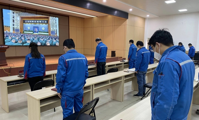 中化蓝天郴州基地干部职工收听收看江泽民同志追悼大会