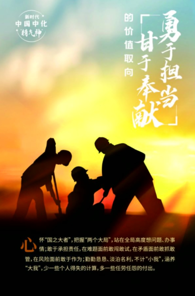 人无精神则不立,国无精神则不强。党的二十大报告强调要“弘扬以伟大建党精神为源头的中国共产党人精神谱系”“增强实现中华民族伟大复兴的精神力量”,要求发扬“奋斗精神”“奉献精神”“实干精神”“创造精神”等,提出“团结奋斗”和“三个务必”的时代要求。 为深入学习贯彻党的二十大精神,弘扬伟大建党精神,传承两化优良传统和红色基因,教育引导全体干部职工以更加昂扬奋进的姿态奋力打造世界一流综合性化工企业,中国中化党组提出塑造以“艰苦奋斗、开拓创新的精神状态;勇于担当、甘于奉献的价值取向;求真务实、真抓实干的工作作风”为核心内容的新时代中国中化“精气神”。
