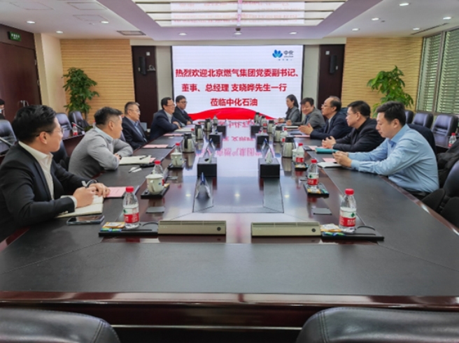1月17日,中国中化副总经理、党组成员,中化能源董事长、总经理、党委书记钟韧会见来访的北京燃气集团总经理、董事、党委副书记支晓晔一行。