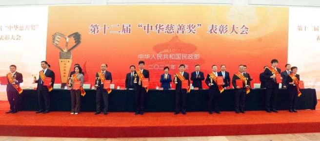 9月5日,第十二届“中华慈善奖”表彰大会在北京人民大会堂举行。中国中化凭借在乡村振兴、疫情防控、救灾减灾、扶弱济困、志愿服务等领域的贡献荣获“中华慈善奖”荣誉。中国中化副总经理、总会计师、党组成员李福利参加大会并作为获奖企业代表上台领奖。 “中华慈善奖”是中国公益慈善领域中的最高政府奖,旨在弘扬社会主义核心价值观和中华民族传统美德,表彰社会各界奉献爱心、回报社会的慈行善举,鼓励、带动更多社会力量参与慈善事业,更好地发挥慈善事业第三次分配作用,助力促进全体人民共同富裕。本届“中华慈善奖”共表彰捐赠企业37家、慈善楷模29人、慈善项目和慈善信托50个、捐赠个人28人。