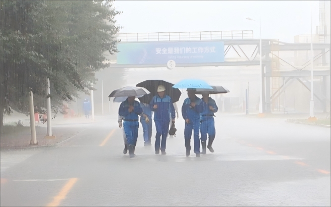 图片沈阳化工员工冒雨赶往工作岗位