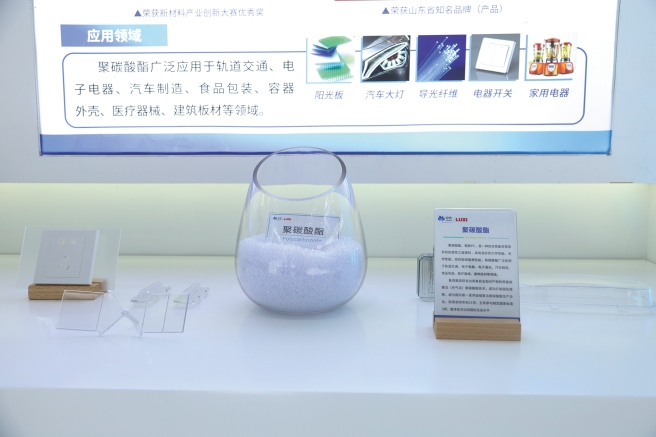 鲁西集团:高端新材料产品 赋能美好生活 鲁西集团业务领域涵盖煤化工、盐化工、氟化工、硅化工、化工新材料等,主要生产聚碳酸酯、己内酰胺、锦纶6、多元醇、甲酸、高端新型制冷剂、有机硅等百余类产品,年产化工产品1000万吨,产品远销欧美及东南亚等地区。本次展会上,鲁西集团主要展示聚碳酸酯、锦纶6、二甲基硅氧烷混合环体(DMC)、丙酸等高端化工新材料,及化肥、装备等领域产品。 聚碳酸酯:聚碳酸酯是一种高性能的热塑性工程塑料,具有良好的力学、光学、热学及阻燃性能,广泛应用于轨道交通、电子电器、汽车制造、食品包装、医疗器械、建筑板材等领域。鲁西集团拥有界面缩聚法(光气法)聚碳酸酯技术自主知识产权,是国内首家采用界面缩聚法生产聚碳酸酯的企业。