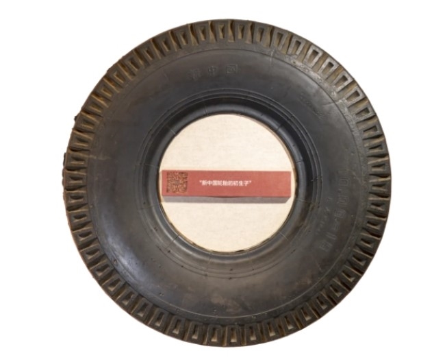 胎膜上刻有“新中国”字样的轮胎,是青岛轮胎厂(青岛黄海轮胎有限公司前身)生产的第一条橡胶充气汽车轮胎,被誉为“新中国轮胎的初生子”,它见证了中国大型橡胶企业作出的贡献。