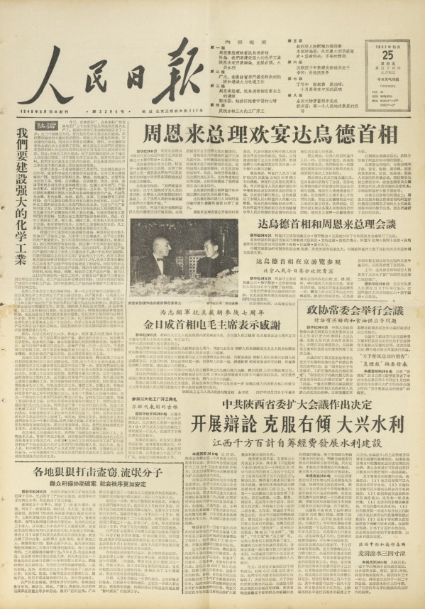 1957年10月25日,《人民日报》头版刊登社论《我们要建设强大的化学工业》,指出:“一切与发展化学工业有关的部门都要支援化学工业部门,共同建设我国强大的化学工业。”