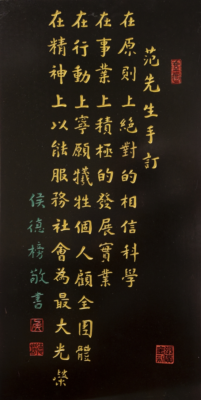 永利化工厂“四大信条”牌匾,由篆刻家张广金依据侯德榜先生手书“范先生(范旭东)手订本团体信条”制作。“四大信条”被后人誉为“中国企业精神的鼻祖”。