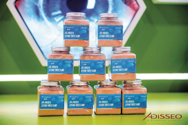 亮点一:未来功能蛋白源斐康® 安迪苏的未来功能蛋白源斐康®是以天然气为原料生产的单细胞蛋白源。每使用10万吨斐康®单细胞蛋白可节省90亿升水,代替鱼粉使用可减少约42万吨-45万吨野生鱼类资源消耗,代替植物蛋白使用可以减少多达535平方公里的土地占用。