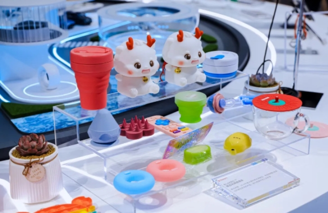 亮点三:舒适生活新“硅”途 在舒适生活领域,埃肯展示了3D打印有机硅面膜、天然有机硅胶混合物头发护理精华油、智能手机摄像头模组、VR眼镜等相关创新产品,成为展区一大看点。