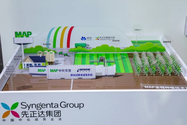 种植产业链 在种植产业链展区,先正达集团旗下中化农业MAP带来助力中国农业现代化转型的解决方案。中化农业MAP为种植者提供全程技术解决方案,深入推动农产农服联动,有效链接生产与市场,助力农业现代化和绿色转型。据统计,相较于普通农户,中化农业MAP服务农户化肥利用效率提升29%,农药利用效率提升30%,温室气体排放强度降低19%。
