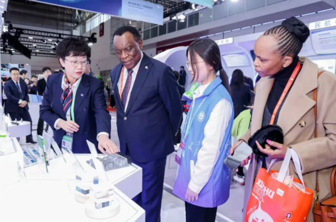 国家发展和改革委员会产业发展司等部委单位,湖北省、江苏省南京市、河南省焦作市等地方政府观展团,美国驻华大使馆、巴西驻华大使馆、南非驻华大使馆、泰国商会、加纳商会等外交及国际组织观展团莅临中国中化化工新材料产业链展台,了解中国中化化工新材料在民航轮胎、民航材料、低空经济、医疗健康、新能源和绿色建筑等产业链领域的前瞻布局和自主创新能力。
