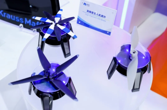 民用航空材料 除民用航空轮胎外,中国中化还展示系列以创新技术加持的民用航空材料:芳纶-航空轻量化材料和e-VTOL碳纤维覆盖件样品,可确保飞行器结构件兼具强度与刚度,并满足机身轻量化需求;应用于飞行器气动密封、增压密封、燃油密封、防火密封、系统密封等场景橡胶密封件;兼具光学性能、耐候性和高机械强度的航空有机玻璃,可应用于透明视窗、仪表板等透明件制造;此外,中国中化还展示了应用于航空领域的高性能涂料、PVF膜等产品。 配套低空经济产业链 中国中化旗下机械装备企业展出的精密注塑工艺设备,可高效加工高性能玻璃纤维或碳纤维增强材料,确保无人机桨叶等零部件的高精度和高品质,助力低空经济发展。