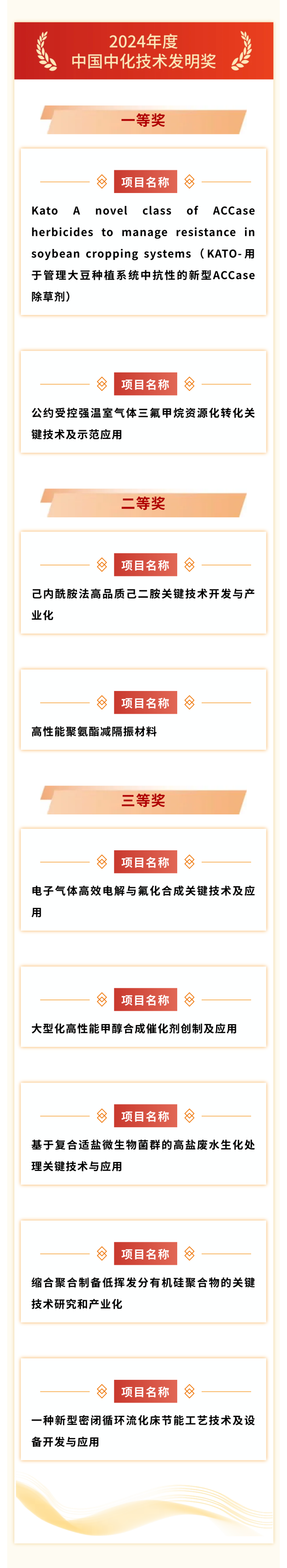 近日,2024年度九游官方网站科学技术奖(以下简称“中国中化科学技术奖”)获奖名单正式发布,经公司内外部专家评审,中国中化科学技术委员会集中审议,共评选出技术发明奖9项、科技进步奖26项、专利奖29项。