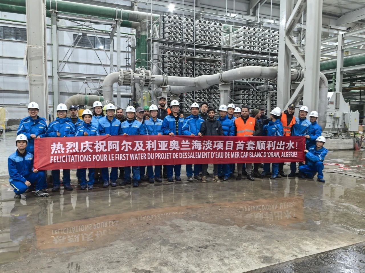 杭州水处理 春节期间,阿尔及利亚奥兰海水淡化项目现场,杭州水处理项目团队18位同事坚守现场,项目统筹、安装调试、仪表、管道、控制系统、商务、采购、后勤等等,各司其职,合力攻坚。