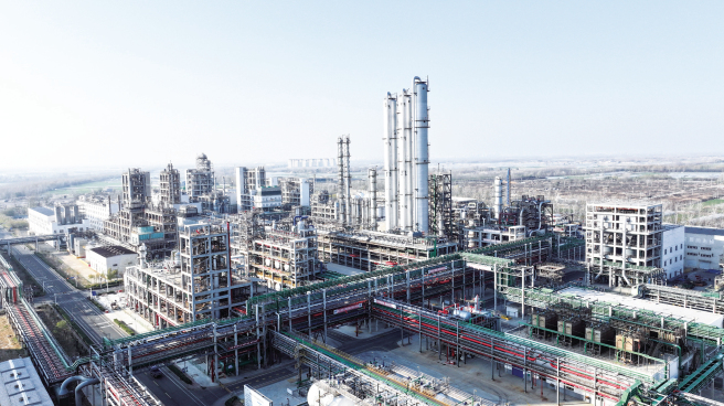 鲁西集团 40 万吨/年有机硅项目 新发展理念要求推动行业绿色低碳发展。石化化工行业经济总量庞大、工艺流程复杂、产品种类繁多、能源资源消耗量大,主要污染物和二氧化碳排放量也较大。加快推动石化化工产业绿色低碳转型发展,不仅是贯彻落实新发展理念、实现“双碳”目标的迫切需要,也是推进新型工业化和人与自然和谐共生现代化的必然要求。当前,世界各国都积极将化工新材料的发展与绿色发展紧密结合,大力推进化工新材料全生命周期绿色化发展。构建绿色制造和服务体系,推进资源节约高效利用,已成为贯彻新发展理念的迫切需要。 二、强化关键核心技术攻关,持续推动产业转型升级 作为以综合性化工为主业的中央企业,中国中化深入贯彻落实工信部等九部门印发的《精细化工产业创新发展实施方案(2024-2027年)》,持续强化石化化工特别是化工新材料领域关键核心技术攻关,加快氟硅材料及制品、高性能纤维、电子化学品等领域关键产品研发布局,以科技创新赋能高端化、智能化、绿色化转型,助力推动行业高质量发展。 坚持科技创新赋能产品高端化,提升重点产业链供应链韧性与安全水平。产业链供应链安全稳定是构建新发展格局的重要基础。习近平总书记指出,要围绕发展新质生产力布局产业链,提升产业链供应链韧性和安全水平。中国中化充分认识科技创新对于提升产业链供应链韧性和安全水平的重要意义,瞄准战略性新兴产业对高端新材料的迫切需求,将民用航空、电子信息、新能源三大领域作为公司重点发展方向,发挥氟材料、有机硅、芳纶纤维等领域技术优势,加快布局新产品,为用户提供产品与技术综合解决方案,推动我国高端化工新材料自给能力提升。 面向民航产业,中国中化聚焦航空轮胎、航空涂料、密封型材等领域持续发力,为国产大飞机全面配套奠定基础。突破民航轮胎制备关键技术,实现我国自主研制民航子午线轮胎首次装机,研制波音B737、空客A320、商飞C909系列民航轮胎,品类覆盖我国民航机队80%的配套需求,有力保障了民航产业链、供应链安全。面向电子信息产业,突破六氟丁二烯电子气体制备关键技术,建成国内首套具有自主知识产权的产业化装置;打通聚苯醚系列产品全套生产工艺,开发的产品广泛应用于电子信息相关领域。面向新能源产业,成功研发锂电池粘结剂用PVDF树脂,打破严重依赖国外进口的局面。此外,突破高强高模对位芳纶纤维结构均匀控制等一批产业化关键技术,为防护装备、光纤通信等领域提供原材料保障。